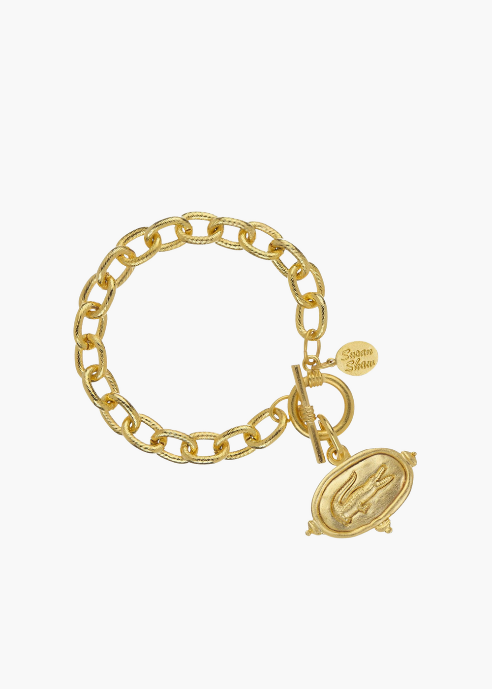From the marshes of South Carolina to Florida and beyond, few things are as emblematic of the American Southeast as the alligator. These quietly powerful creatures are an icon in the natural world for their grace and primal beauty. With meticulous detail and three-dimensional elements, our Alligator Intaglio Bracelet will serve as a spirited addition to your Susan Shaw collection.