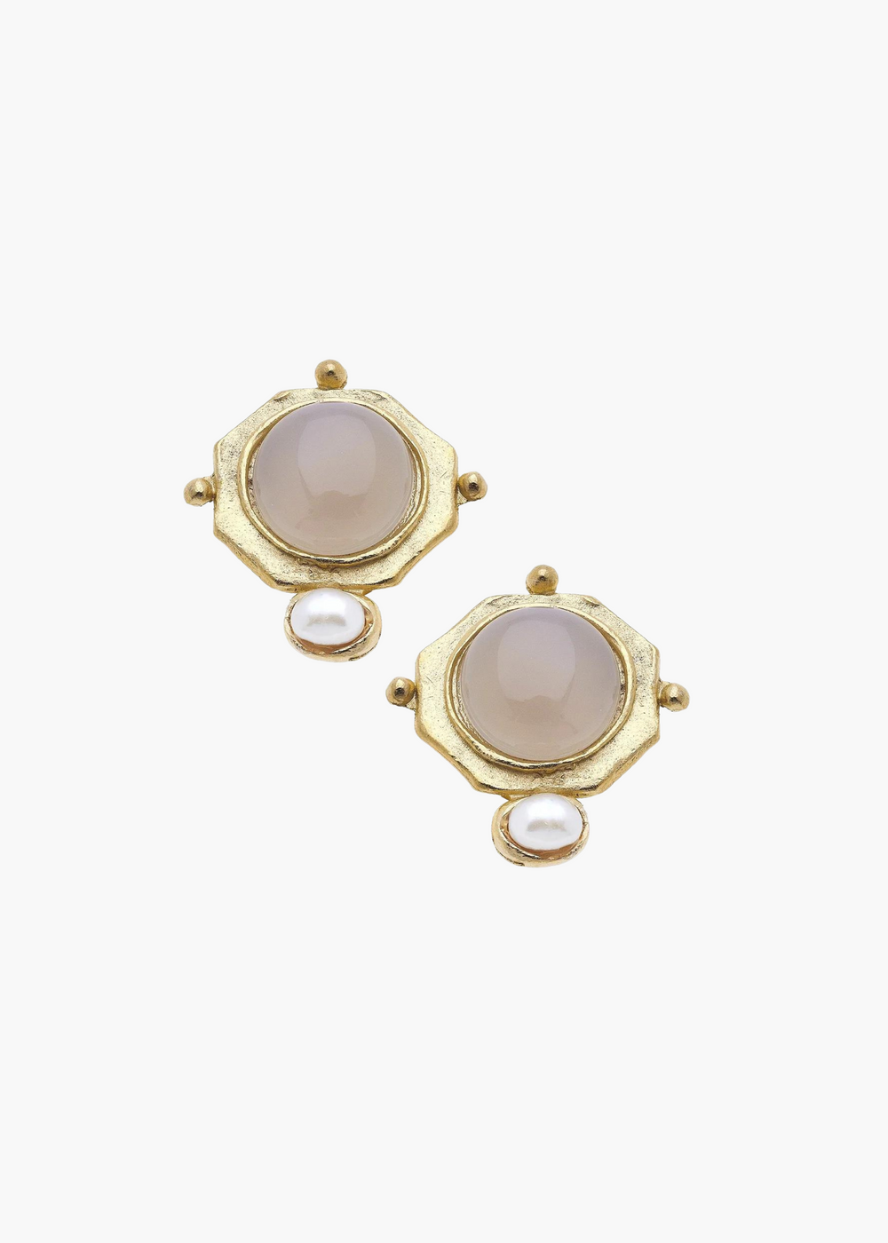 Semi-precious stone earring with freshwater pearl detail. Set in triple plated 24K plated gold.