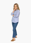 This classic blue and white button-up will be a closet staple for years to come. Dress it down with a pair of jeans or dress it up for a more professional look!