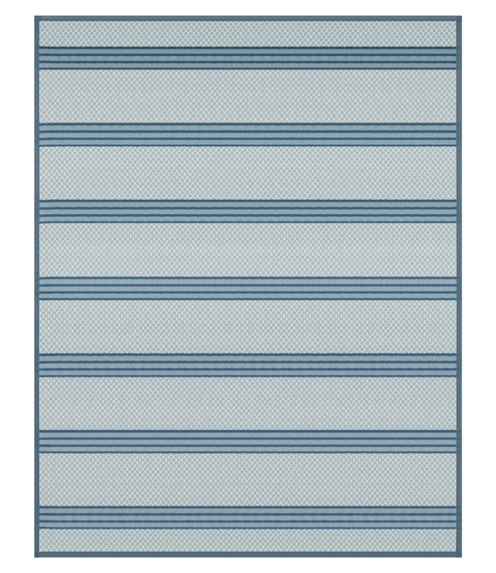 Oh Captain, my Cozy. A classic New England birds eye pattern meets blue-on-blue stripes for an eye-catching design that makes a bold and memorable statement, from porch swing to sofa.