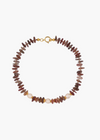 Indulge in the unique textures and colors of the natural Sun Stones complemented by the classic allure of baroque pearls.