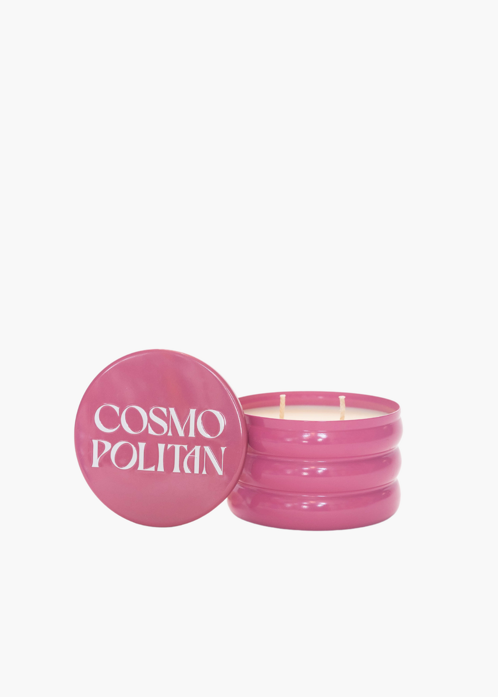 Chic and captivating. Boldly bewitching. Inspired by the pulsating energy of New York City's nightlife and the iconic presence of the 90's cocktail scene, this fragrance encapsulates the essence of the Cosmopolitan with notes of tropical hibiscus, tangy cranberry, and zesty blood orange. Encased in a vibrant, cranberry-pink colored tin, the candle exudes sophistication with a playful twist.