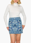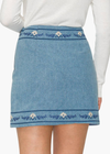 - Turn heads with this embroidered floral mini skirt - Designed with intricate tonal stitching on cotton denim with medium indigo wash - The fitted silhouette highlights your shape, while the vibrant embroidery adds a touch of artistry and charm - Perfect to pair with a simple sweater, sweatshirts, turtleneck or blouse for an effortlessly chic look from day to night.