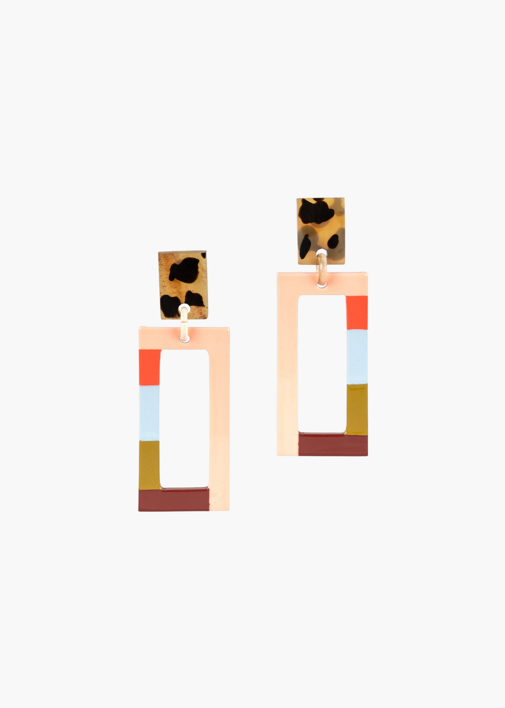 The Del Mar Colorblock Earrings are a best-selling favorite, now in a stunning new colorway featuring vibrant hues and a touch of tortoise. Their bold rectangular design adds a modern pop of color to elevate any outfit.