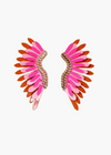 This elongated metal fan earring is so trendy. It has three layered of color with a studded gold inner accent on a post back.