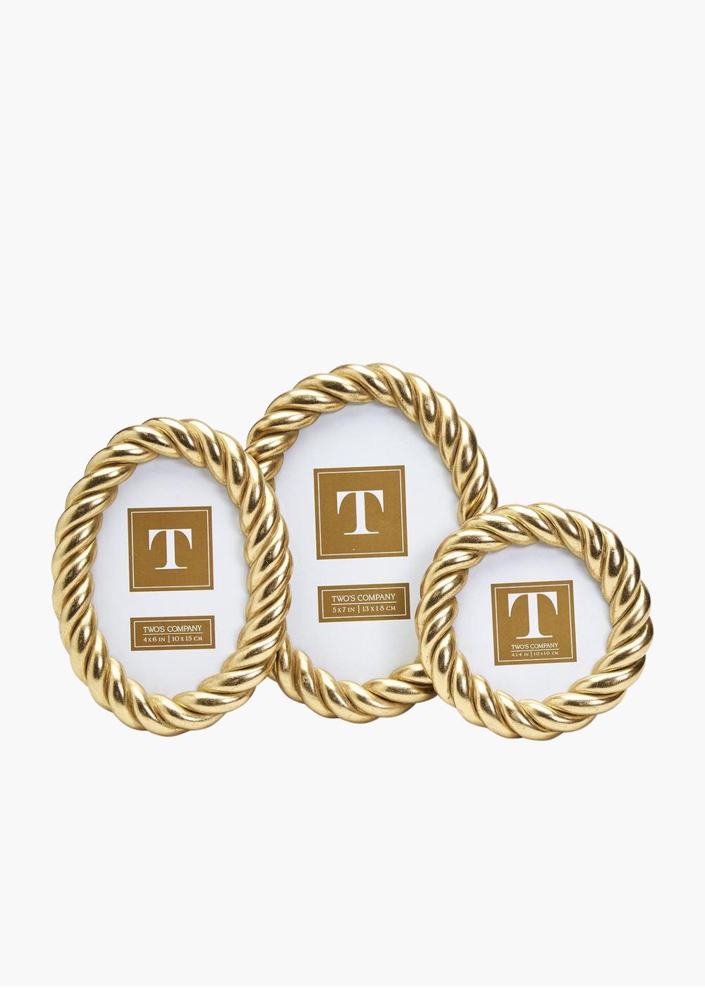 These gorgeous, gilded rope frames are a great addition to any home. Each design hangs or stands vertically or horizontally depending on your photo.