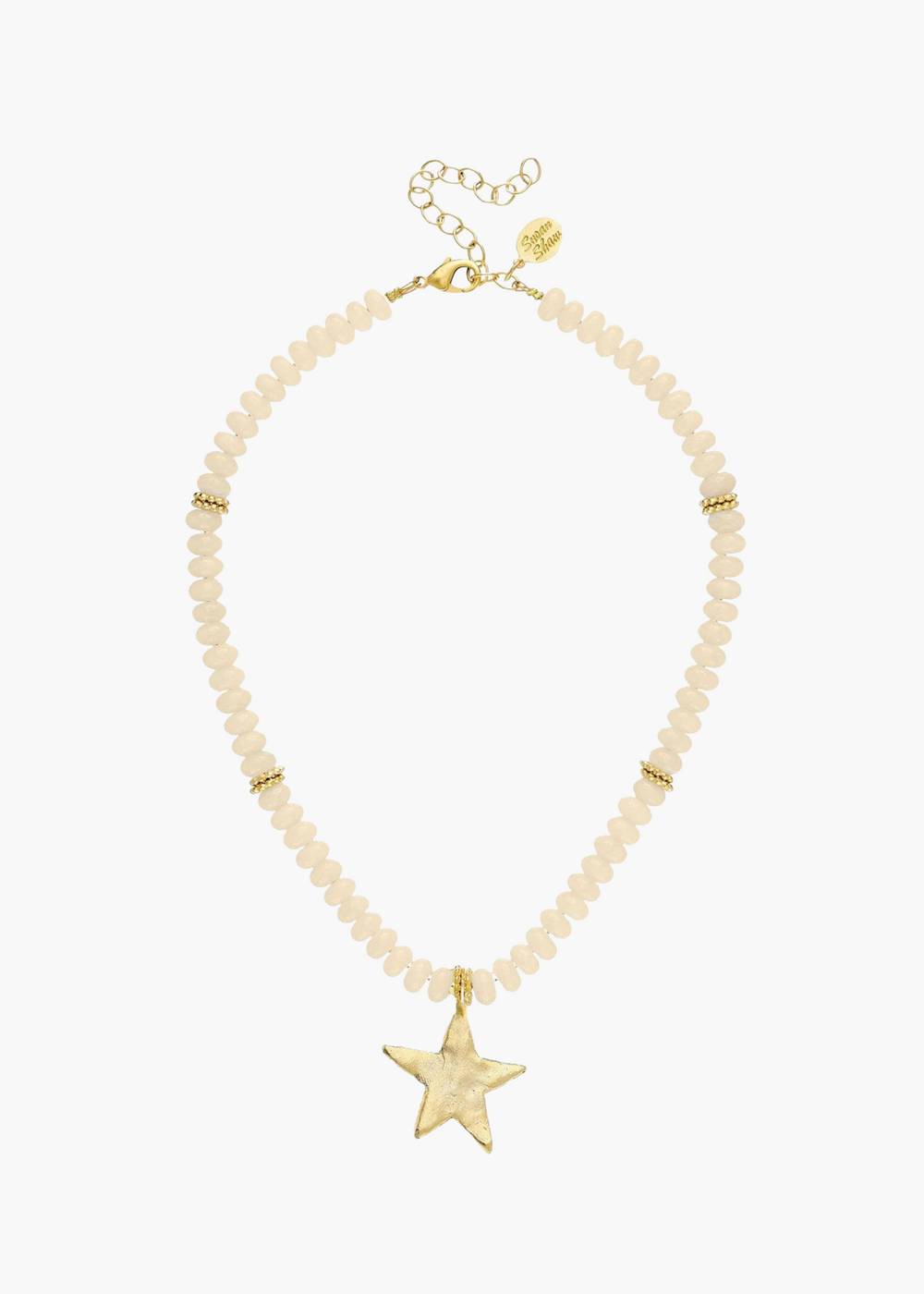 Our beloved Lolly Necklace is now available in a brand new shade and featuring a charm! Susan's original abstract star, molded by hand using techniques she learned in art classes at the University of Texas, is now reimagined and available for the first time in years. This necklace may be neutral, but it makes a big statement and will earn you compliments.