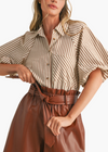 For personalized guidance, please reach out to our team at help@poppyandpink.com. We'd be delighted to serve you! Dressing chic comes easy when you’re styling with this striped bubble sleeve top! Striped fabric shapes a collared neckline with a button down placket and voluminous bubble sleeves. Relaxed bodice (with a front patch pocket) ends at the waist. Pair with any bottoms to achieve an effortlessly pulled-together look!