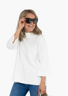 The pullover we can't keep in stock and for good reason—the mock neck and bell sleeve detail make it flattering for any age. Style her with white jeans for Spring or pair her with a pair of chino shorts for a cooler summer night out on the water.