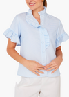 Crafted in a light blue tufted cotton, this Sadie Top is a versatile must-have for summer. Featuring a ruffled neckline and covered buttons. This comfortable top can be paired with our Grace culottes and a flat for a more casual, breezy daytime look. This breathable, yet high-coverage top will take you from day to night all season long.