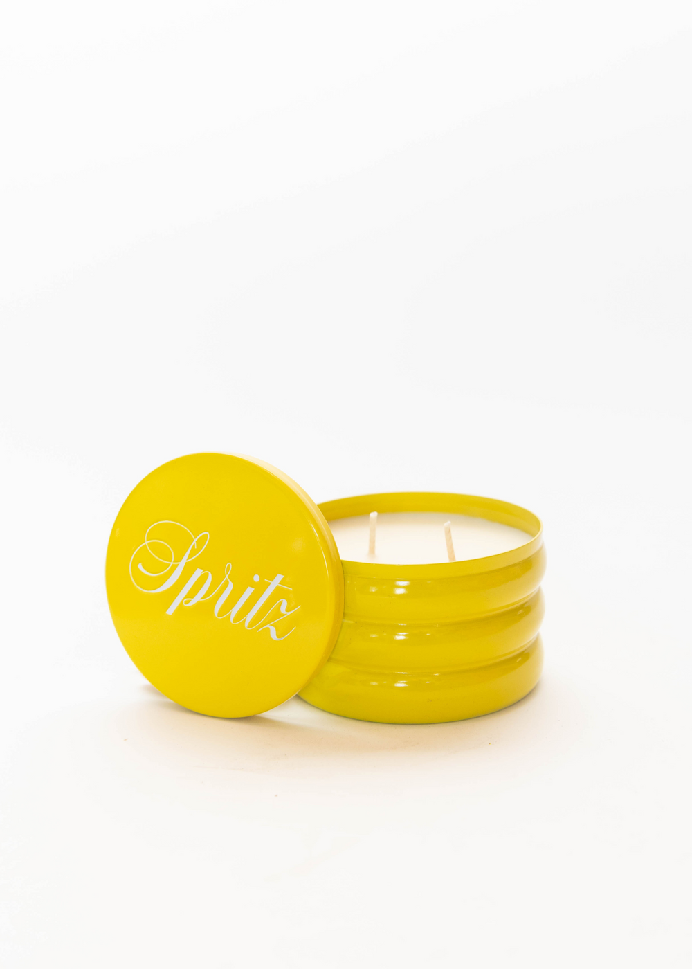 Our Spritz candle is a celebration of the tradition of Italian Aperitivo, a prelude to the evening's festivities. Nestled in a luminous, yellow tin, this candle is a tribute to leisure and luxury. It effuses a symphony of zesty Meyer lemon, verdant verbena, and a hint of spicy ginger, invoking the spirited ambiance of Italy's social hour.