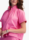 Stand Collar Short Sleeve Stitch Detail Shirt