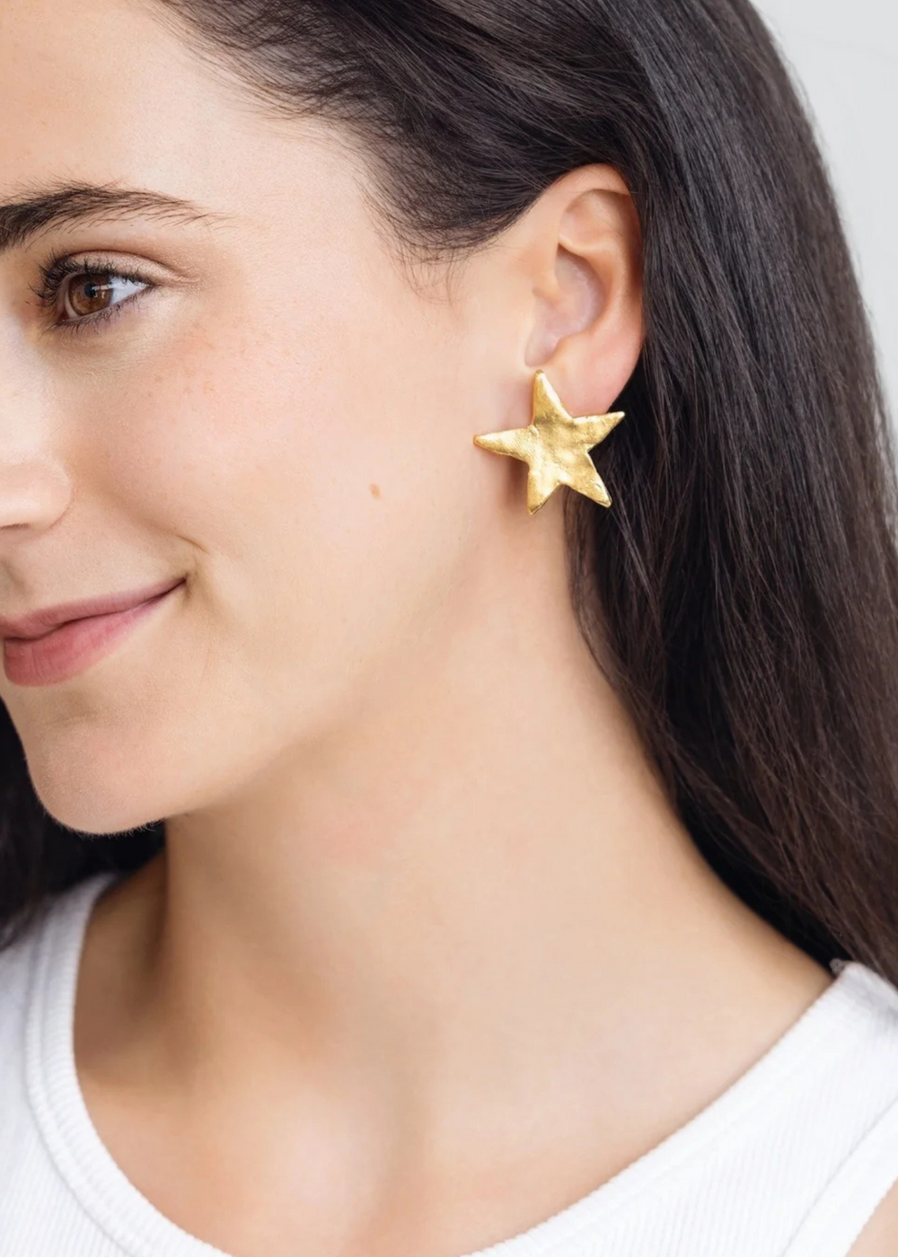 Susan's original abstract star, molded by hand using techniques she learned in art classes at the University of Texas, is now reimagined and available for the first time in years! The Star Studs are a bold and unexpected addition to your jewelry box. Playful and statement-making, these celestial studs are lightweight and will earn you compliments time and time again.
