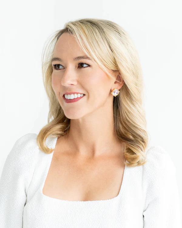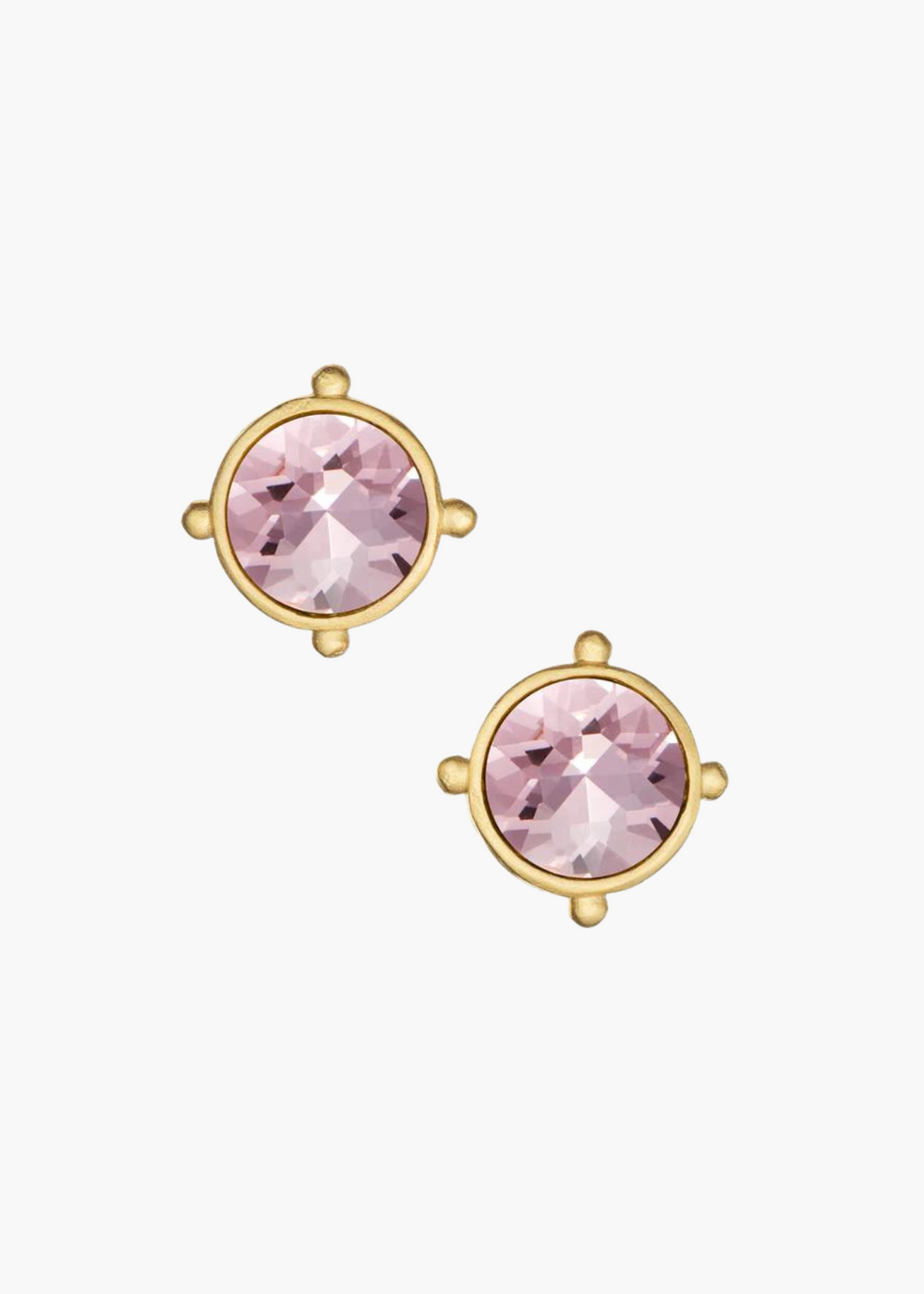 Rhinestone crystal and 24K triple-plated gold hand-cast over a lead-free, nickel-free base metal.