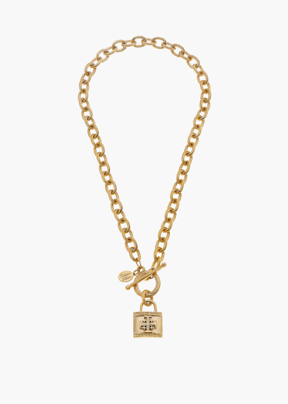 Handcast Gold Jerusalem Cross Lock on Chain Toggle Necklace