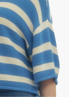 Striped half sleeve sweater knit top featuring round neckline. Unlined. Knit. Non-sheer. Medium weight.